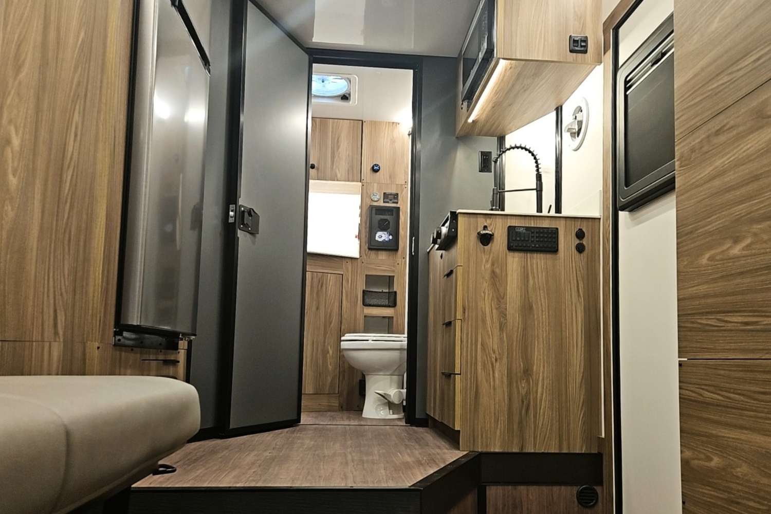 – High-Efficiency Forced Air Truma Combi Furnace (12V/LP or 110V modes)