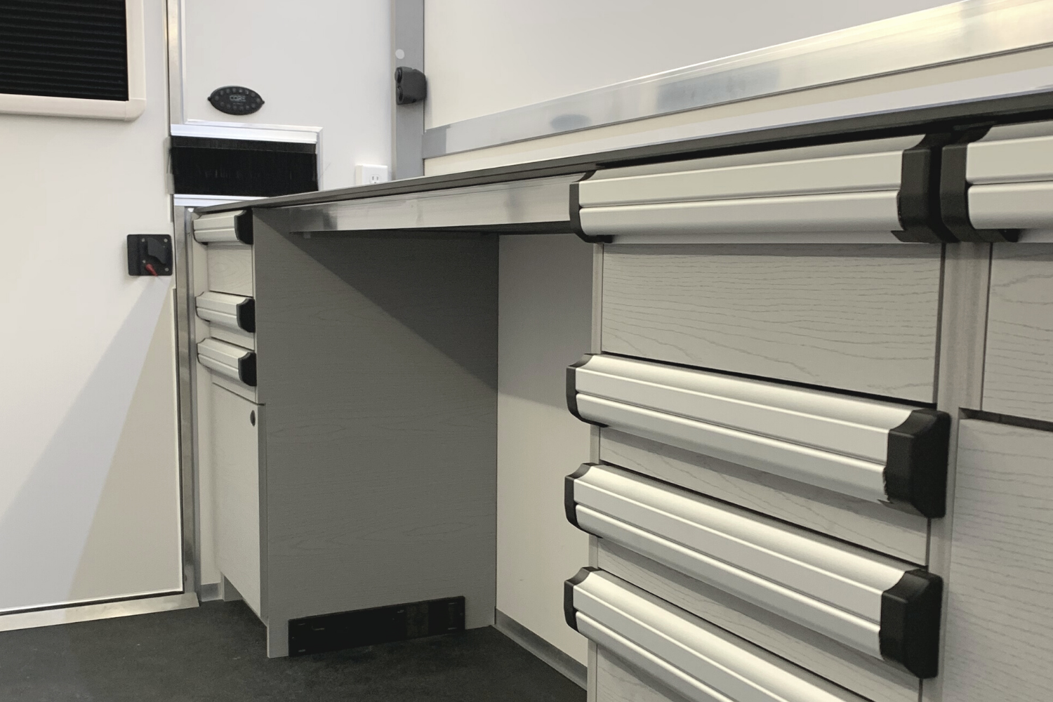 Our full menu of parts and accessories will help you put the finishing touches to your design. We offer custom aluminum extrusions, door kits, windows, adhesives, electrical components, LED lights, door latches, custom cabinetry, and the list goes on. Inquire today about your needs.