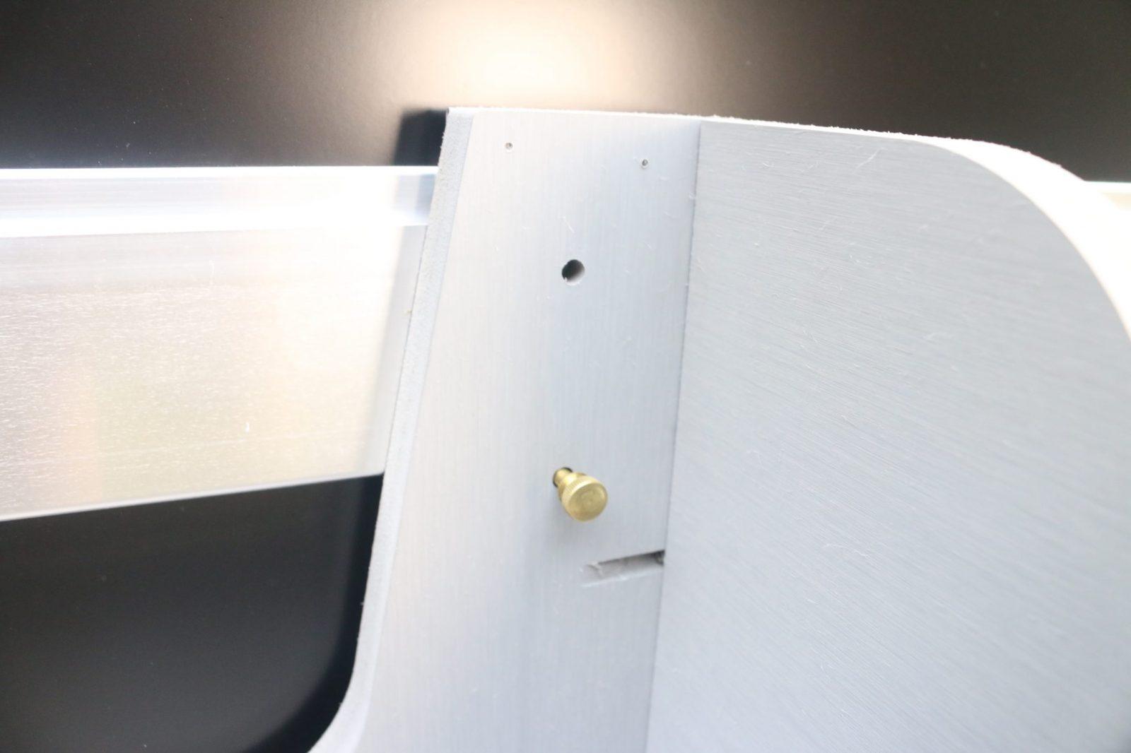 Two positions for the thumb screw to help support the shelf so it stays in place on either the high or mid CORE Rail.