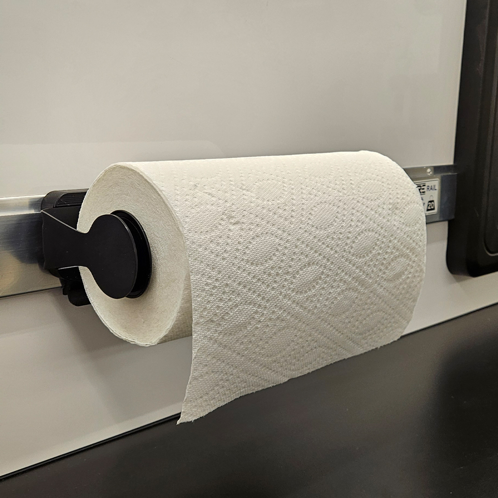The paper towel holder mounts anywhere on to the CORE rail system giving you convenient access whenever needed.